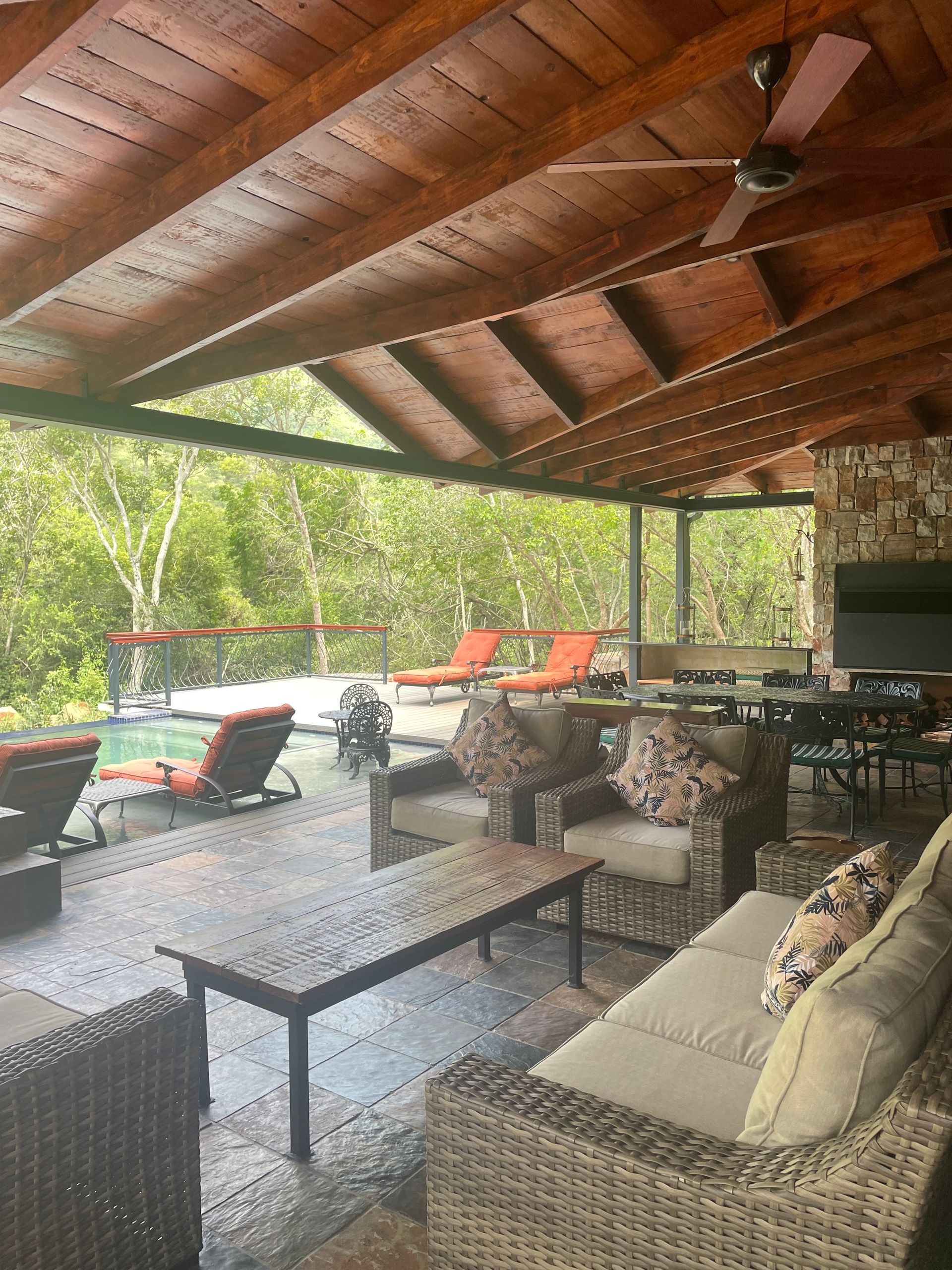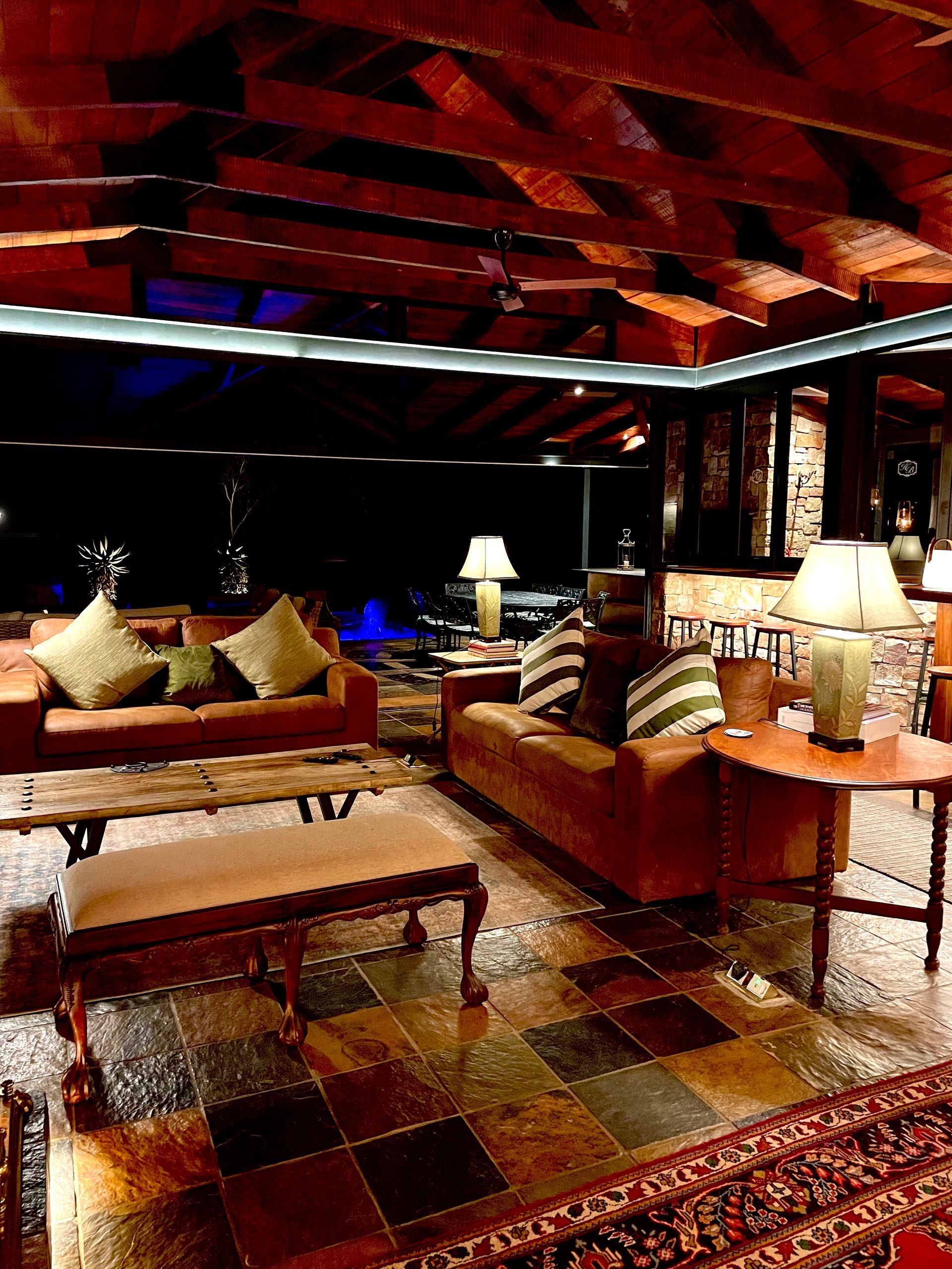 Bakoni Forest Lodge is situated in a forest in the valley amongst the Bakoni ruins and consists of an open plan kitchen, dining and lounge area that opens up onto several verandas. The infinity pool with jacuzzi jets takes center stage along with the magnificent mountain views. Close by but importantly separated deep under the forest canopy is a well-equipped boma area. Exclusive use of the lodge is assured with a minimum booking of three bedrooms.